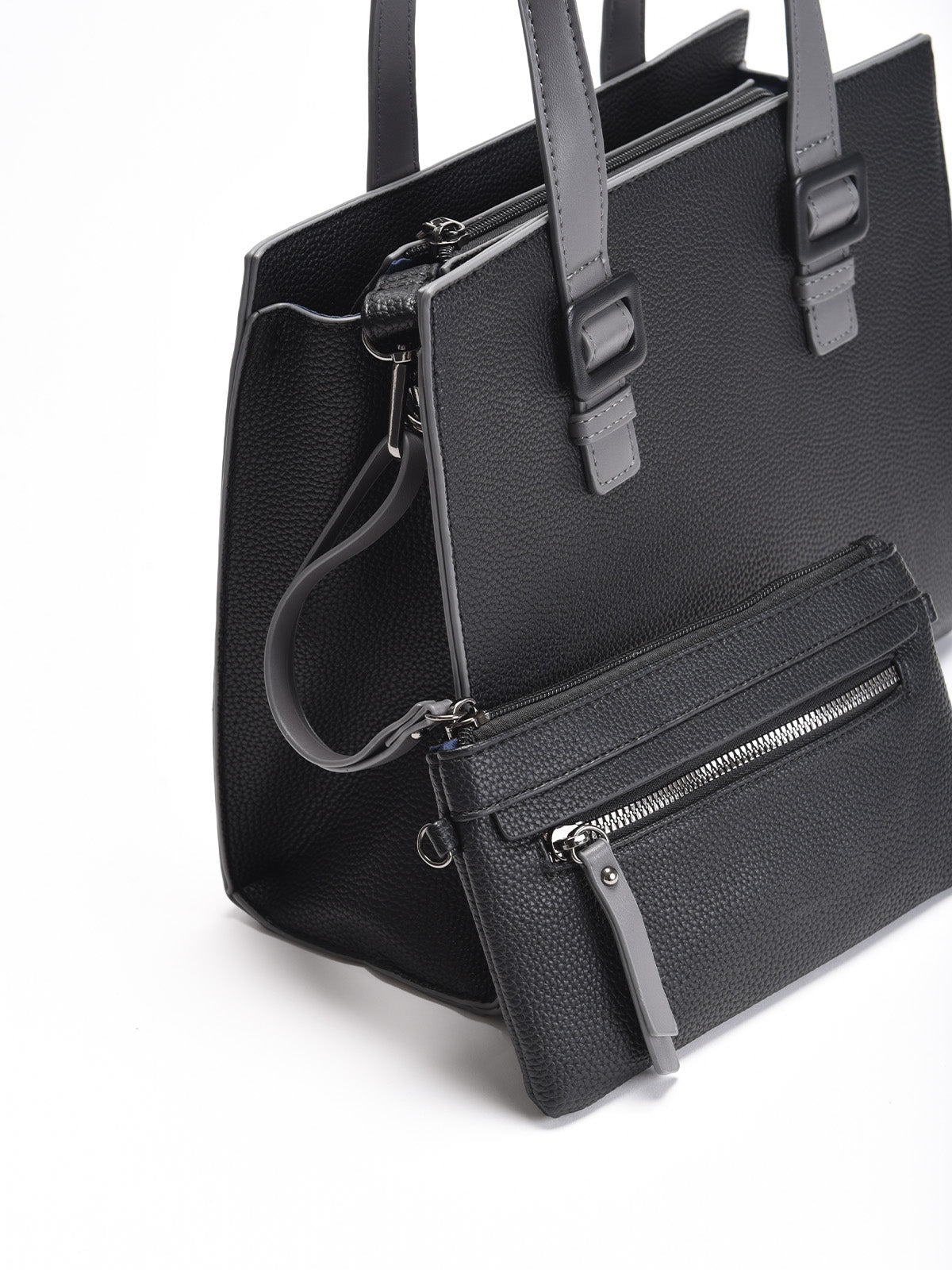 Compra ahora tu bolso bicolor negro y gris con bolso extraíble y añade un accesorio atemporal a tu colección.