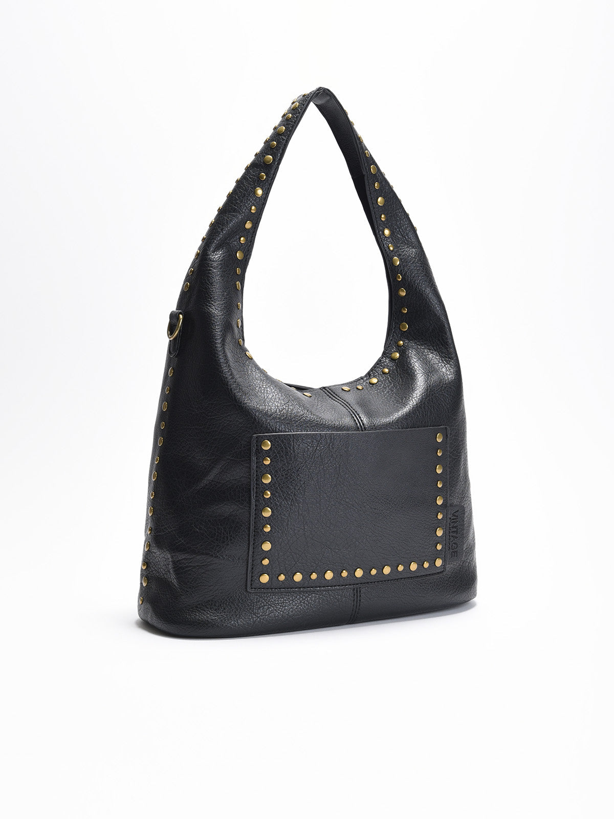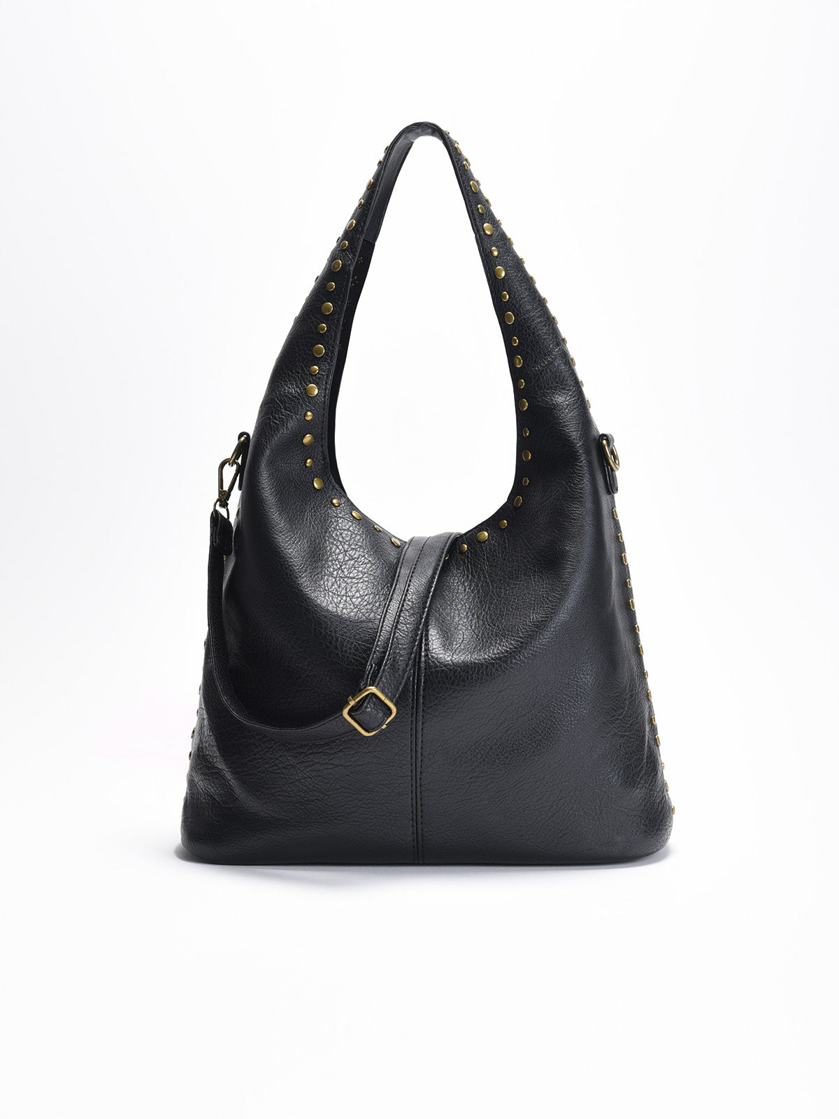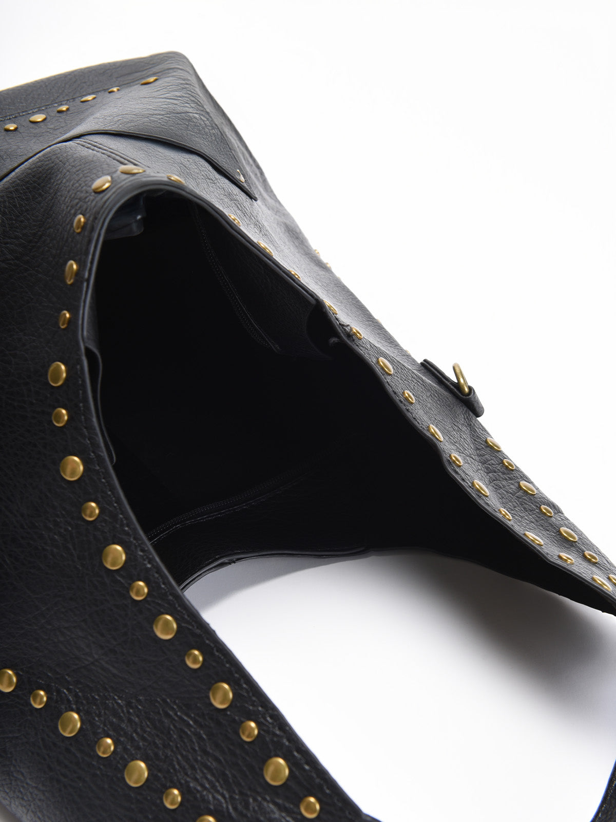 El bolso shopper negro de mujer con tachuelas doradas es la elección perfecta para quienes buscan un accesorio versátil con un punto de carácter. Su diseño de alta calidad combina resistencia y estilo, mientras que los detalles metálicos en dorado aportan un aire moderno y atrevido que transforma cualquier look. Incluye además un bolsillo extraíble con cremallera, ideal para mantener tus imprescindibles siempre a mano y organizados.