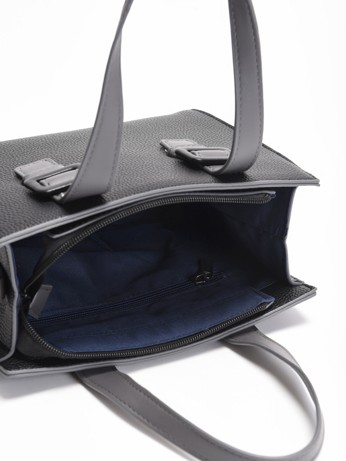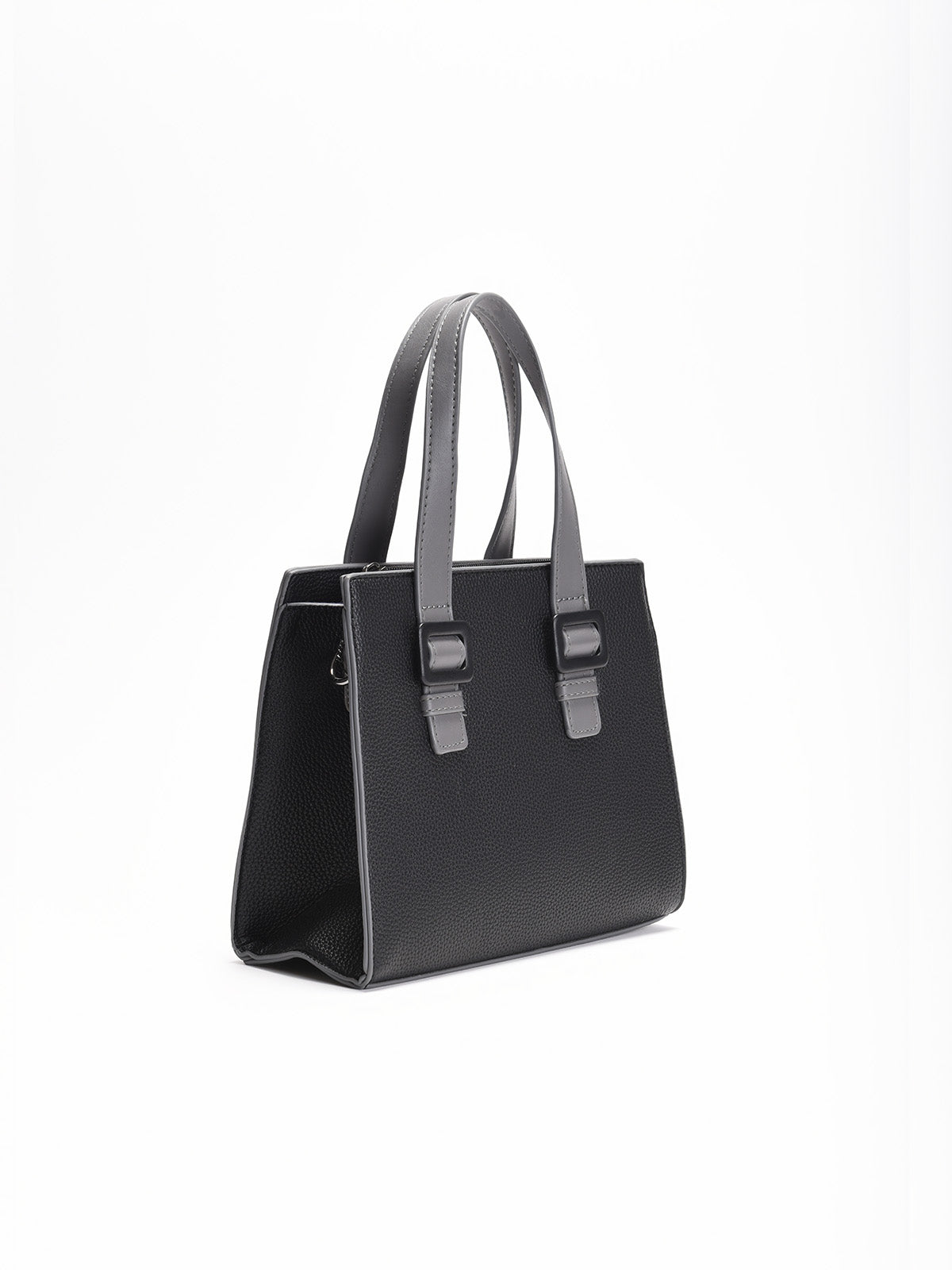 Compra ahora tu bolso de mano negro con asas grises y convierte cada look en una declaración de elegancia atemporal.