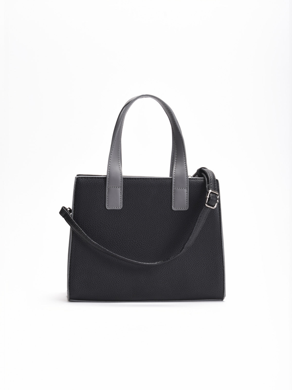 El bolso de mano negro con asas grises es una apuesta segura para mujeres que buscan un accesorio versátil, elegante y funcional. Cuenta con un diseño estructurado y acabado bicolor que aporta un aire sofisticado y moderno. Incluye correa ajustable y desmontable, lo que te permite llevarlo tanto en la mano como al hombro o cruzado, adaptándose a tu ritmo diario.