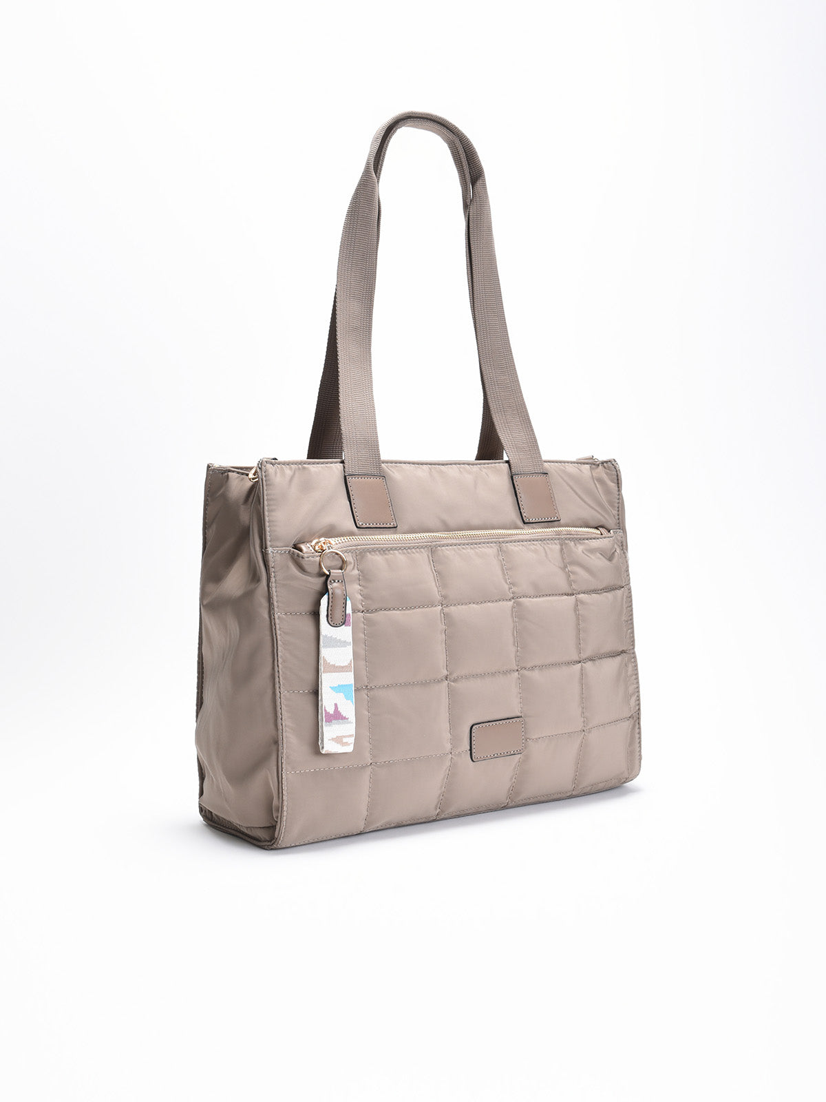 Este bolso shopper acolchado en color taupe para mujer combina practicidad y estilo urbano en un diseño versátil que se adapta a tu ritmo diario. Fabricado en tejido acolchado de alta resistencia, destaca por su ligereza y comodidad, con doble asa al hombro y bandolera ajustable y extraíble, lo que te permite llevarlo como más te guste. Su interior amplio y bien organizado, con múltiples compartimentos y bolsillos con cremallera, lo convierte en el accesorio perfecto tanto para la oficina como para tus escapadas de fin de semana.